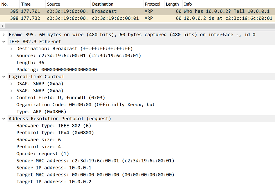 یکی دیگر از موارد عجیب در مجموعه من یک بسته ARP است که از یک هدر SNAP استفاده می کند: