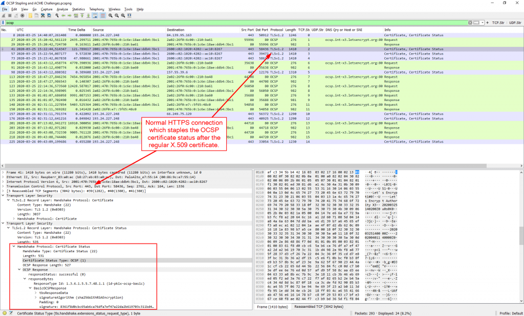 OCSP Staplingشما می توانید برخی بسته های مربوط به OCSP را در Ultimate PCAP پیدا کنید ، به دو قسمت تقسیم شده است: