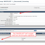 بنابراین به اینجا می رویم: 1) شنونده جدید " L_Securemail_Incoming " از نوع عمومی در آدرس IP If_Incoming اما با پورت گوش دادن 2525. عملکرد پیش فرض RAT "پذیرش" است (از آنجا که فقط نامه های قبلاً پذیرفته شده را دریافت می کند) و HAT WHITELIST دارای یک فرستنده واحد از آدرس IP دستگاه رمزگذاری است. تشخیص اسپم و محافظت از ویروس فعال است زیرا این اولین نقطه ای است که ESA نامه را در متن ساده مشاهده می کند.