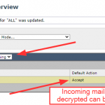 3) فیلتر پیام برای نامه های دریافتی . در واقع ، من از سه فیلتر پیام مجزا برای آن با شرایط مختلف استفاده می کنم. همه نامه را از طریق رابط If_Incoming به دستگاه رمزگذاری ارسال می کنند ، ورودی ورود را اضافه می کنند و همه بررسی ها را رد می کنند: